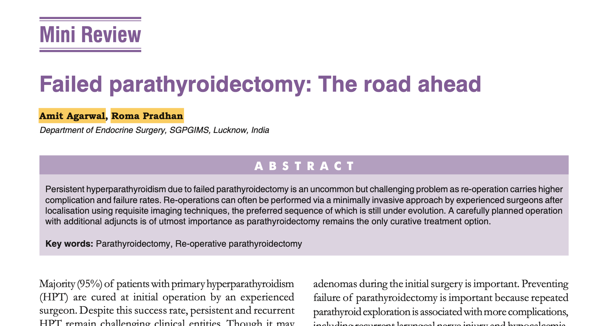 At Medanta Hospital, Lucknow, our team of highly experienced parathyroid surgeons specializes in minimally invasive parathyroid surgery, ensuring precise treatment with faster recovery and minimal scarring. With over 35 years of collective experience, Dr. Amit Agarwal and Dr. Roma Pradhan have successfully treated hundreds of patients suffering from hyperparathyroidism (HPT) and related disorders.